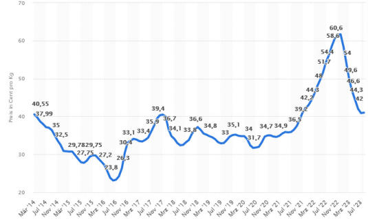 Milch war zeitweise teurer als Biomilch.